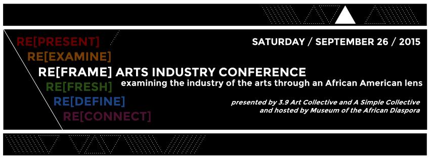 Reframe your view of the art world at the RE[FRAME] Arts Industry Conference on Saturday, September 26, 2015. Presented by 3.9 Art Collective and produced by A Simple Collective, RE[FRAME] is a unique look at all aspects of the art industry through the eyes and experience of black artists and arts professionals.